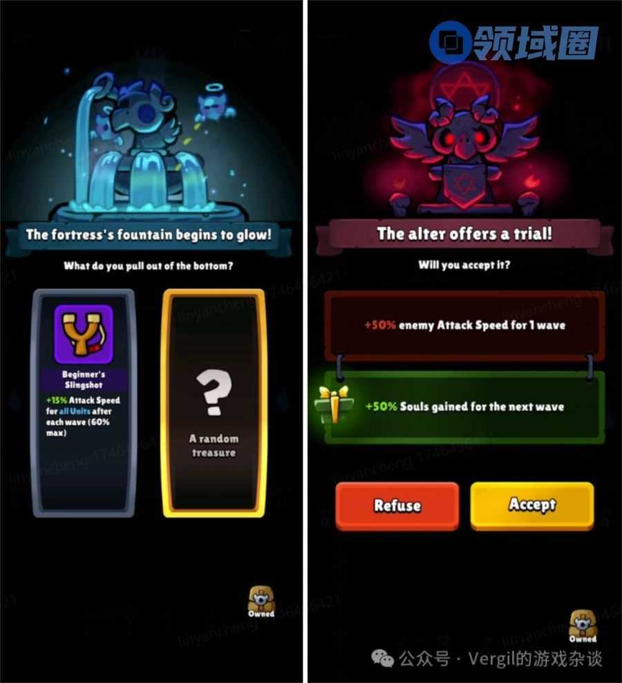 - 泉水事件提供两个奖励,左边是固定神器,右边是随机神器,玩家选择其一获得