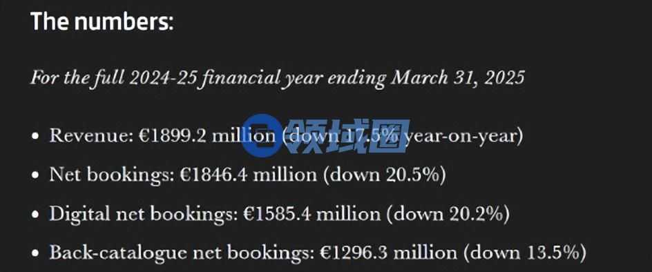今(15)日,育碧公布2024-2025财年盈利数据,显示其全年营收全面下滑。