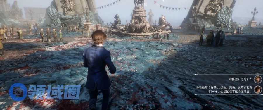 氛围感(法式浪漫)。这其实就是各种环境叙事构成的,比如游戏开场的音乐、场景、虽然人们在庆典却从环境中透露出的一些悲凉,共同烘托出了游戏的背景和故事线,最终在一个求而不得的爱情悲剧演出中将整体氛围拉到了机制——用求而不得的爱情的超强情绪把序幕拉倒高潮。
