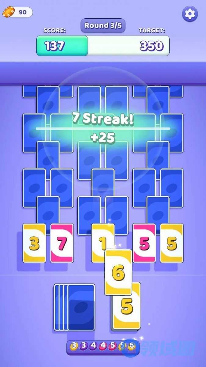 介绍:用UNO牌的规则方式玩基础Tripeaks纸牌,同色点击+同数换花色,然后在规定排堆消除完之前,通过凑出各种牌型获得高分,分数达到通关要求即可过关,比如5连、7连、顺子等等都可以额外加分,然后在章节内的各个子关卡中间有关卡间buff,玩家可以使用通关后获得的金币购买加成卡,给对应牌型、花色增加分数加成或者额外的卡牌,有点类似小丑牌里的星球牌、塔罗牌、小丑牌的分数加成效果。
