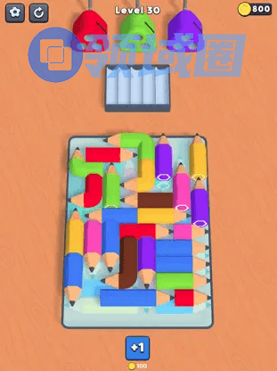 介绍:铅笔Jam消除,然后用铅笔的颜色表现颜色限制,另外是用类似贪吃蛇、长条软糖的表现形式做出铅笔之间的遮挡、层级关系等等区分。