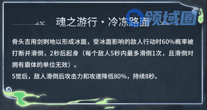 冰面地形60%概率滑倒控场,5觉追加80%攻速削弱+【悔恨】易伤。虽对霸体无效且有5秒CD,但和水系冰冻能玩 “滑倒→破甲→斩杀” 循环,搭配核心输出延长控场窗口,水队输出直接起飞!