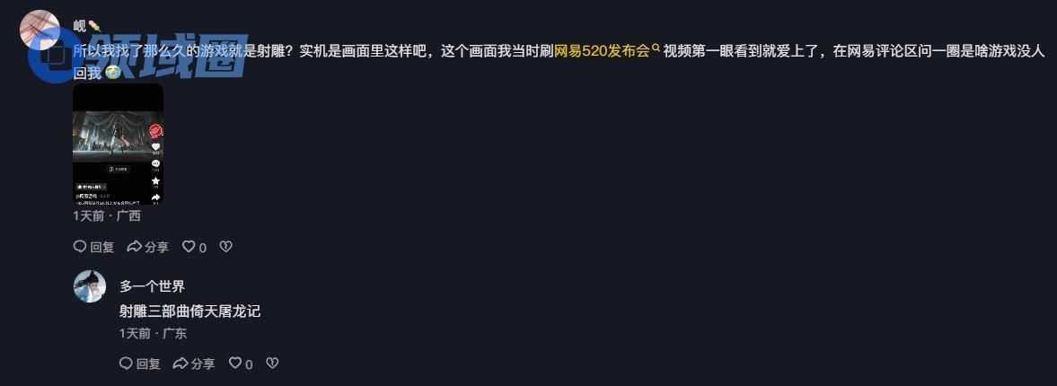 由此,也引发玩家寻迹感叹:“所以我找了那么久的游戏就是射雕?”