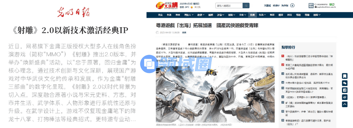 这记漂亮的翻身仗,恰似金庸笔下的侠客绝处逢生,也得到了主流媒体的认可。《光明日报》评价《射雕》:“通过技术创新与文化深耕,展现国产游戏对中华武侠文化的传承和发展”,《文汇报》报道:“《射雕》为武侠领域注入新活力”。