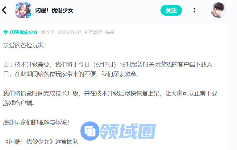 但较为可惜的是,《闪耀!优俊少女》仅仅上线8天后,便以“技术升级需要”,在2023年9月7日被宣布关闭游戏客户端下载入口。当时玩家对游戏下架原因各有猜测。原因虽不明朗,但当时官方通告表示:将抓紧时间完成技术升级,并在技术升级后尽快恢复上架。但没想到这一下架,便是620余天。