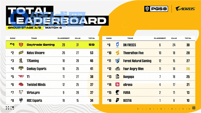 虽然如此,BB战队在接下来的第三把和第六把比赛中,却是拿到了不少的得分点,而PCL赛区的17战队在第四和第五把的表现也很精彩,直接冲进了前4,与TKL、DAY等强敌打得难舍难分。