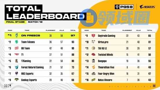 本日之后,DNF暂时以97总积分排名第一,FLC和BB紧随其后。