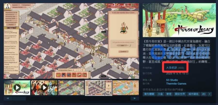 比方说,近期一款刚刚上线Steam平台的独游《吾今有世家》就找到了一个不错的角度,它将视角定位在世家大族这个特殊的概念之上。这个题材的优势在于世族概念不仅与西式/日式贵族概念有一定相似性,其次内涵上又在中国文化与政治体系下演变出不同内涵,这使得题材既能借鉴不少西式贵族模拟游戏的框架,其次题材也有独特的个性可以做出特别的机制与其他游戏做出区别。