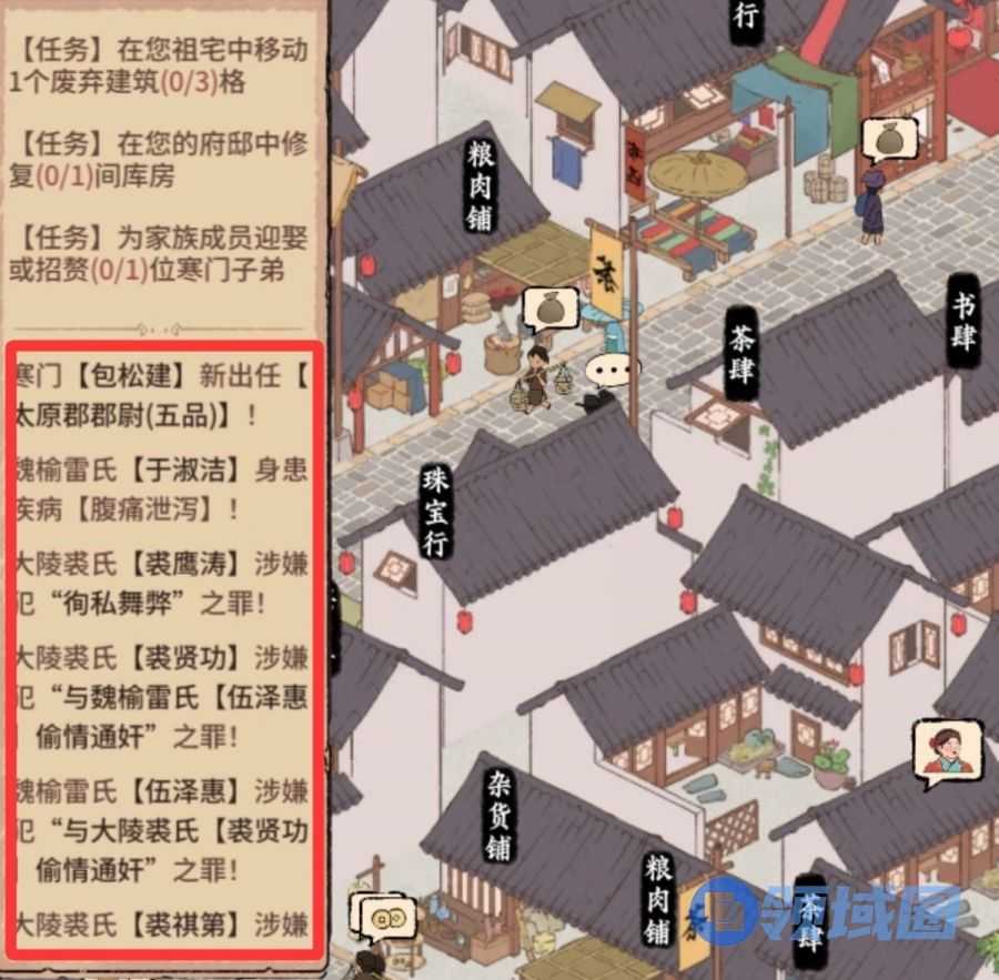 ③用具体的随机事件取代宏观层面的交流。在游戏里,每一个游戏日期内都会发生各种随机事件,这些事件影响各种NPC与家族的命运,也影响玩家今后发展的走向,比如XXX家族的人身患重疾,将不久于人世,玩家可以及时止损不再与之深交;比如某个寒门子弟通过科举翻身,成为你所在郡城的郡尉,玩家可以在日后碰见其人时,考虑巴结他;这种根据情报变化而改变策略的设计,也是游戏与其他模拟经营游戏非常不同的卖点。