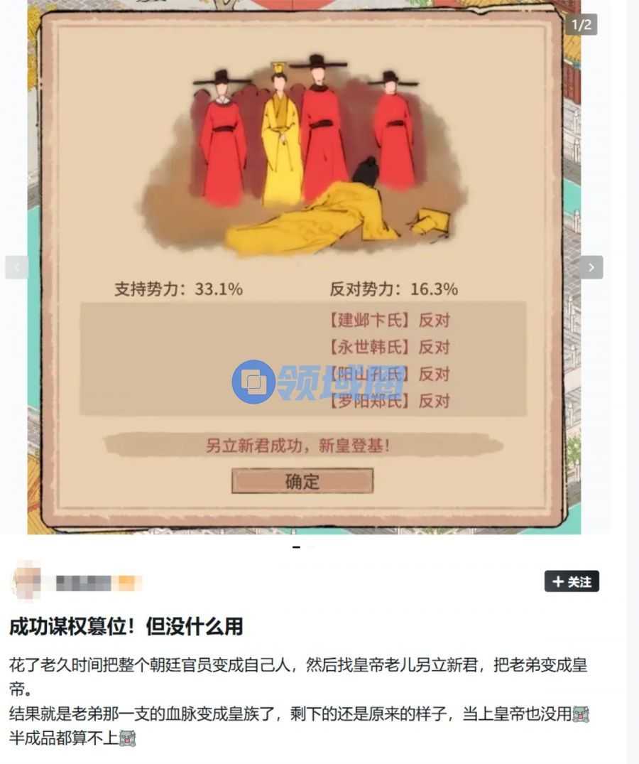 篡位成功以后,却没有后续大的脚本变化与选择分支(图片截取自小黑盒用户椎名真昼)