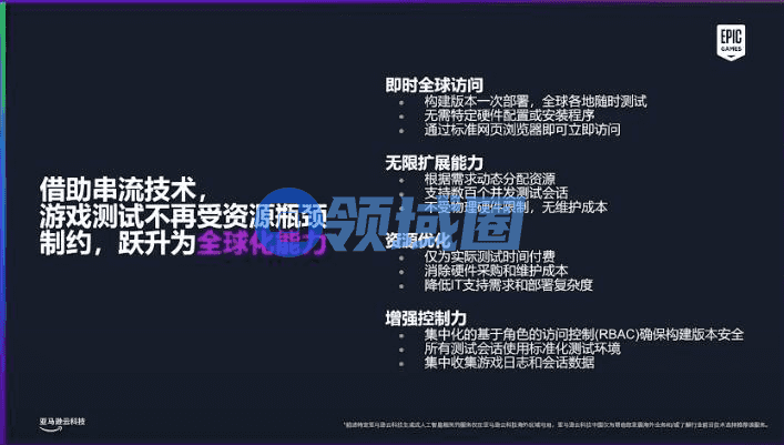 GameLift Streams 的出现,不仅展现了云游戏在 C 端应用的便捷性,更揭示其在游戏厂商测试、发行等全流程业务中的巨大潜力。
