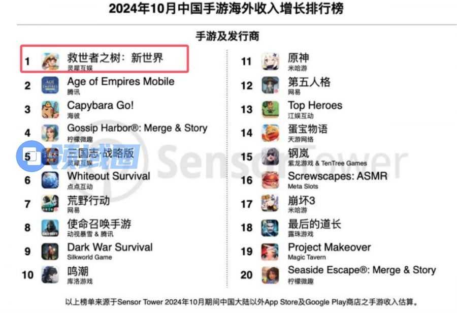 《救世者之树:新世界》去年10月于海外上线,游戏与主流MMORPG不同,弱化了RPG式的数值成长,主打探索、生活社交玩法,凭借反内卷的休闲体验,收获了相当数量的忠实爱好者,首发当月收入超过2300万美元,据Sensor Tower统计,游戏摘下10月份中国出海手游收入增长榜冠军。