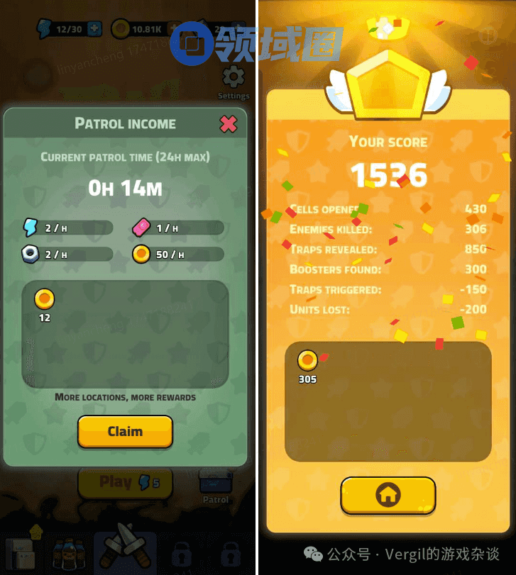 - 扫雷模块的奖励规则表现不够直观,需要多次进行才能理解发放规则,但其实玩家也不用完全理解,明白自己扫雷越好战力越高即可