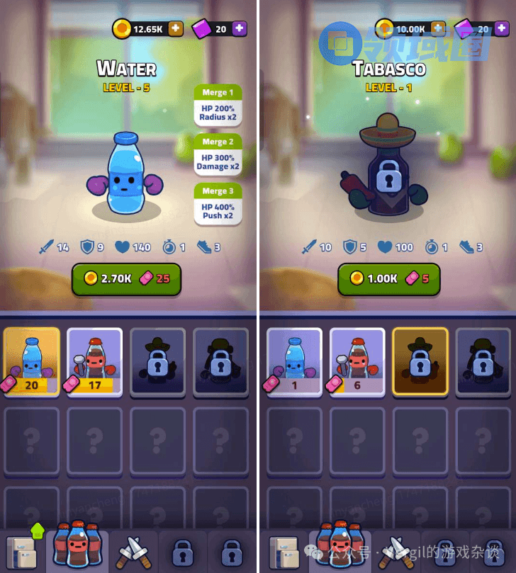 - 瓶子提升部分加入了自动合成规则,也是较为常见的做法,只是采用三合而不是二合,会让战力的提升幅度较慢,瓶子总数也不会太多,整体表现气势不足