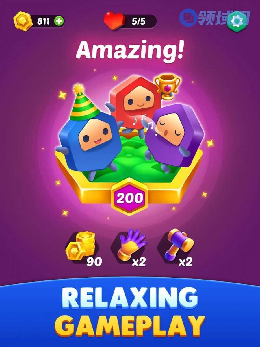 介绍:来自休闲大佬Tripledot出品,相当于是之前的《Hexa Sort》把外围和包装部分做的更精致了,也给各个六边形方块增加了脸部特征以加强了“角色感”,玩法上并不新鲜,跟Hexa Sort差不多,不过meta部分和各种活动做的更精美了一些,项目处在《Hexa Sort》阶段的团队可以看看他们的升级方向和方式。