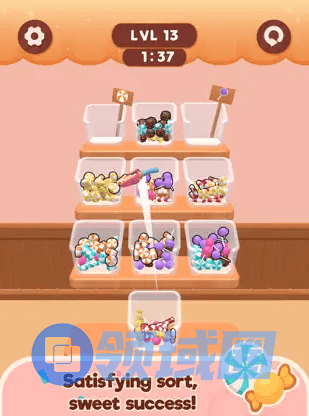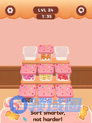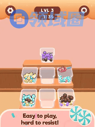 介绍:这款游戏比较吸引我的地方是对水排序《Water Sort》《Nut Sort》类包装形式的探索,把表现换成了糖果、勺子、糖果盒的形式,稍微有那么点新意。不过玩法内核还是没咋变,感觉可以外围包装个糖果店模拟经营之类的。