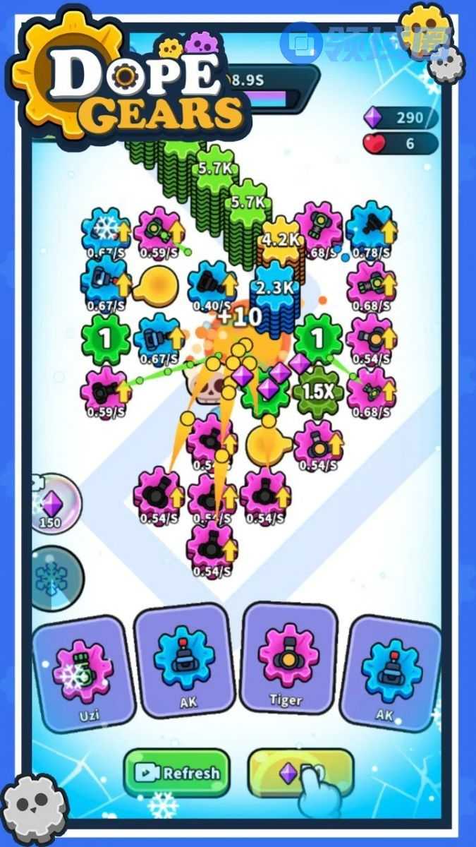 介绍:关卡中有路线和几个齿轮拨片,玩家把炮台放到对应拨片处,拨动炮台齿轮关节,蓄力发射炮台的防御。波次敌人之间可以选择进行炮台合成升级或者放置新的炮台。