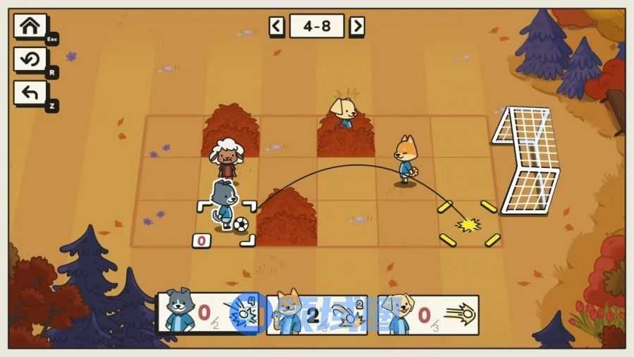介绍:各种动物小伙伴一起踢球的益智小游戏,不同角色射门能力不同,有的可以踢1格、有的踢3格、有的踢直线。玩家通过关卡限制的每关角色能力和走位的组合,以及不同球员之间的配合,把球踢进球门即可。