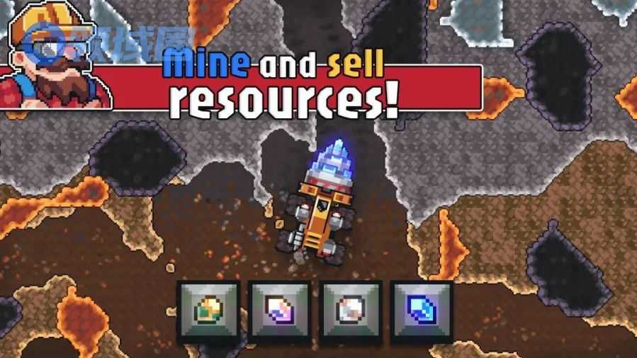 介绍:玩家操作挖掘机在地图中采集各种资源,然后拉回到商店卖钱,用得来的钱升级基地各种基础设施,以及挖掘机的采集效率,一开始是个磨盘挖掘机,后面可以升级为钻头、激光等等。
