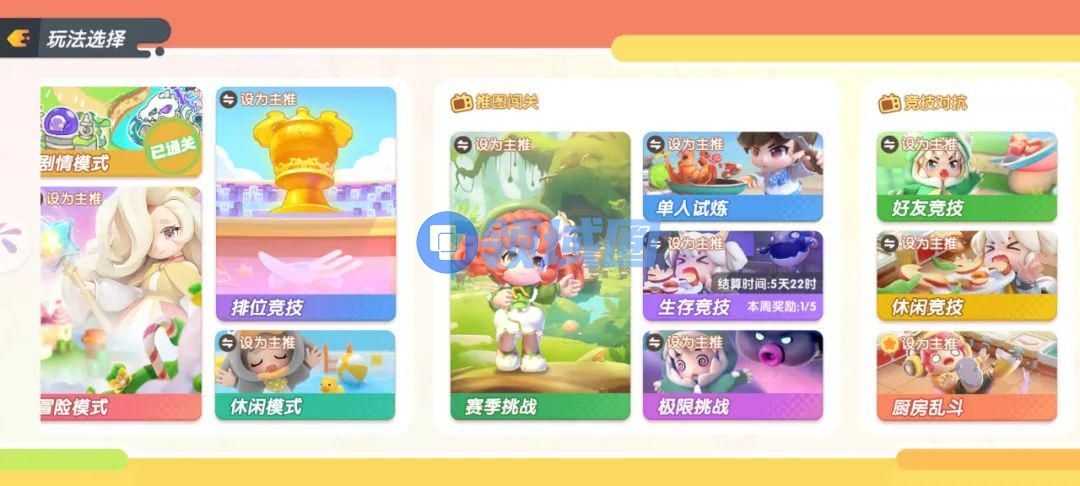 而当玩家通过闯关获得星星,也能解锁更多不同的派对玩法和竞技模式,包含和好友组队开黑、休闲模式、挑战极限,或是专注磨练个人厨艺等多种玩法。
