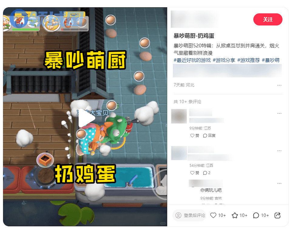 并且,这波美食热潮,也在公测当日化作线上热烈的烹饪体验分享。打开抖音和小红书等图文、短视频社交平台,可以看见#暴吵萌厨#和#暴吵萌厨公测#相关话题,曝光量已超1亿。