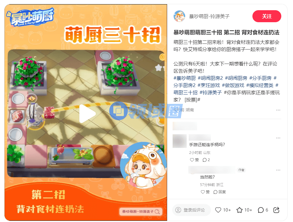 也正因这份“听劝”的端正态度,玩家对官方的最新动态也积极响应,并自发将“厨门”广而告之,以期广纳豪杰。所以公测定档视频一发布,评论区便成为了“厨搭子”们的召唤现场。而当路过的网友好奇:好玩吗?又会被玩家“超好玩”的回答一秒入坑。