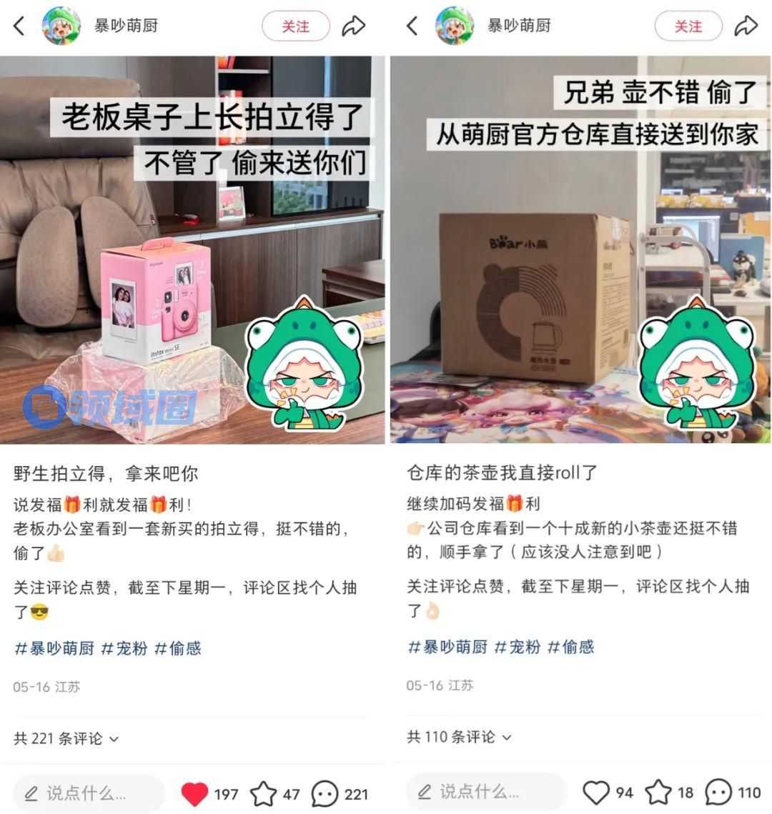 许多连连爆梗的短视频竞相涌现,还有不少千万级KOL博主为《暴吵萌厨》站台直播。