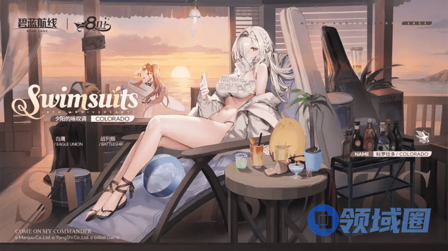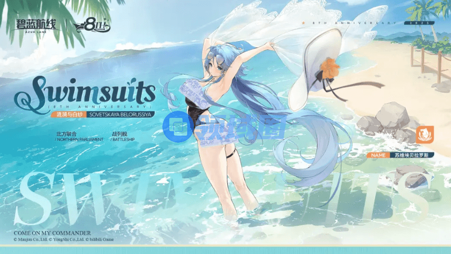 豪华的海岛度假之旅仍在继续,在夏日炎炎的海滨,更多的美少女穿上了清凉的泳装。自5月29日起,《碧蓝航线》换装商店限时上架第二轮8周年限定泳装换装。指挥官可以选择君主-「海滩享受计划」、可畏-「纪念印记」、腓德雷卡·卡尔-「夏日防晒计划」、应瑞-「碧波清夏」、苏维埃贝拉罗斯-「涟漪与白纱」及科罗拉多-「夕阳的咏叹调」等7款风情各异的泳装换装,与少女们在假日的海滨欢快玩耍!