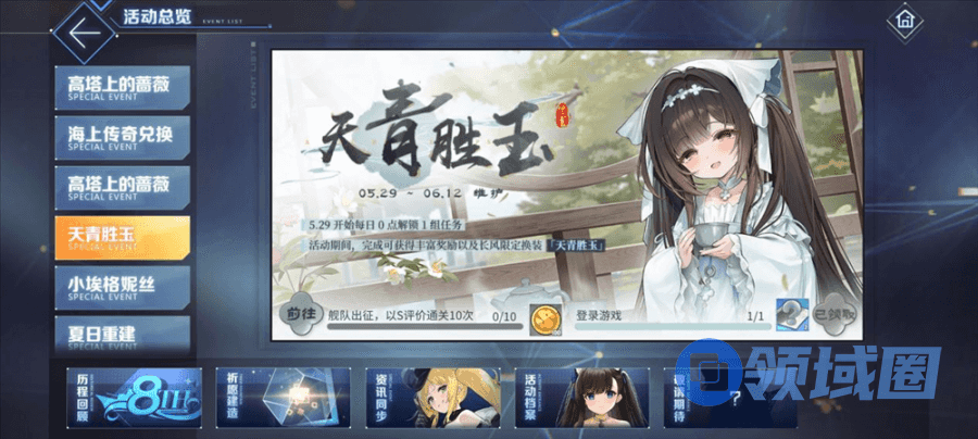 同时,游戏内联动活动「天青胜玉」现已上线,指挥官只需累计完成7日活动任务,即可获得长风联动限定换装「天青胜玉」及其它奖励。