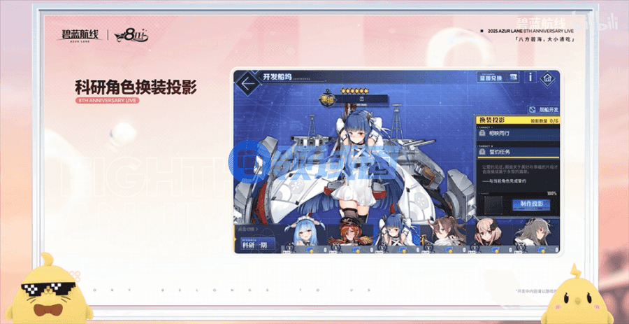 狂欢继续,《碧蓝航线》8周年第二弹全新玩法「换装投影」等待指挥官体验。指挥官可在「开发船坞」点击右上方的「换装投影」进入全新的投影玩法,当前仅科研角色支持「换装投影」功能,通过完成科研角色对应投影制作任务或消耗钻石即可解锁对应角色的「换装投影」栏位。全新的换装投影将进一步壮大指挥官的秘书组哦。