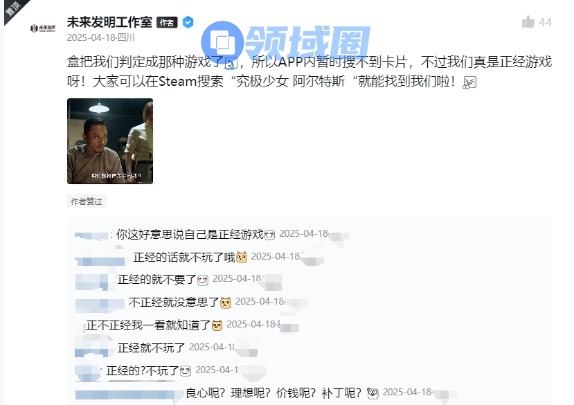 毕竟,官方曾义正严词的表示,自己就是“正经游戏”。但上架某平台后,立马被判定成“那种游戏”,导致无法在APP上搜到,让我不由怀疑这游戏到底有多“正经”(正不正经,我能不知道吗)?