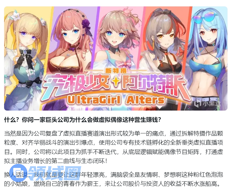 你可能会好奇,一家互联网巨头为什么会做虚拟偶像这种营生赚钱?开发团队给出了极为“合理”的解答。“当然是因为公司复盘了虚拟直播赛道演出形式较为单一的痛点,通过拆解特摄作品颗粒度、对齐华丽战斗的演出引爆点,使用公司专有技术链孵化的全新垂类虚拟直播项目。同时,公司将以此项目为抓手不断迭代,从底层逻辑赋能偶像节目矩阵,打通虚拟主播业务增长的第二曲线与生态闭环!