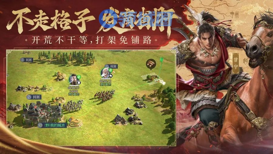 开荒不干等,打架免铺路!彻底告别格子束缚!全沙盘地图装配自由行军系统,你可蛇形走位诱敌深入,也可迂回包抄截断粮道。