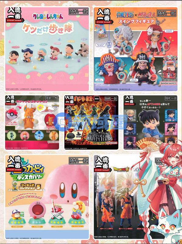 入魂一番是万代南梦宫、哔哩哔哩会员购、阿里鱼、泡泡玛特福赏、瑞华行、塑唐玩具、俐噢玩具、灵动创想等近百家国内外潮玩及周边品牌公司、雕像工作室的官方代理商。真实货源,正品保障,趣味抽赏更放心。