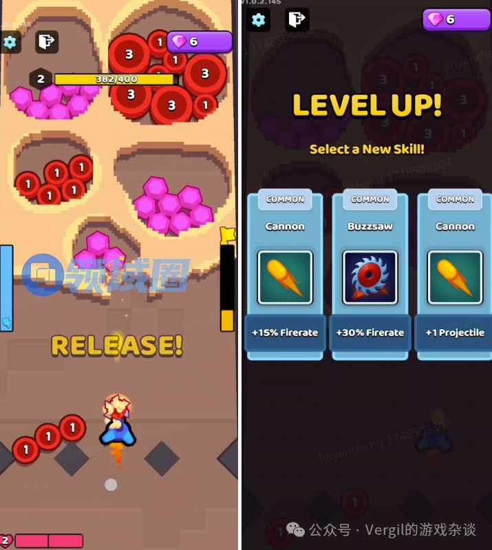 - 击败敌人可以获得经验值,升级时触发三选一BUFF