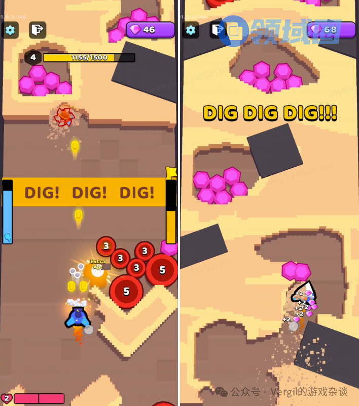 - 关卡进度过半后进入的挖地模式非常爽快,能有效调节前半程玩家的压抑体验,并且从进度上委婉告知玩家当前的进程