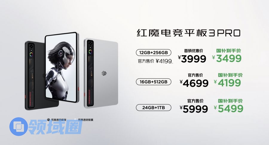 红魔电竞平板3 PRO首发推出三档配置供用户挑选搭配,国补后还有惊喜价格: