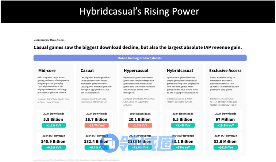 混合休闲模式曾经备受手游开发者青睐,原因是混合休闲游戏既能够覆盖广泛的受众群体,又拥有与中度游戏类似的玩家留存率。