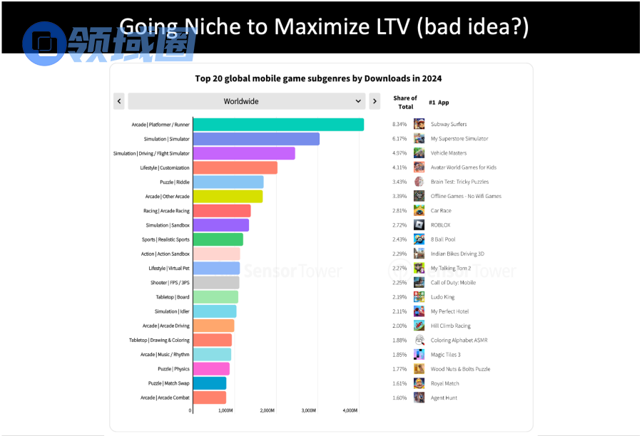 那么,为了提升手游产品的LTV,开发者是否应该将研发方向转向小众品类?