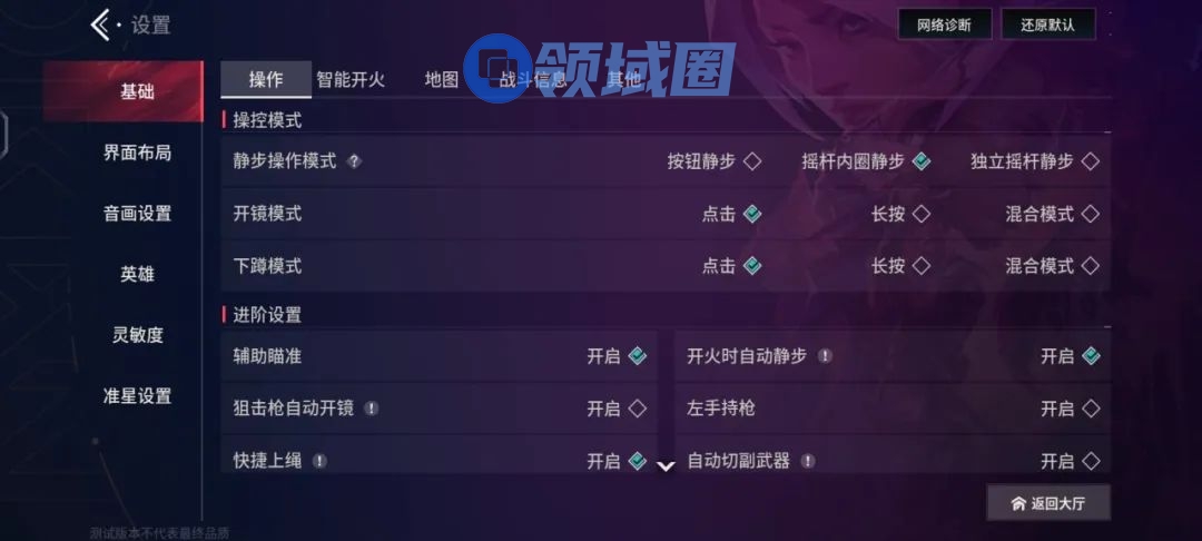 其次则是操作方面的移动端适配,包含射击和技能释放的设计。在射击体验上,不少同行媒体玩家便普遍反应,相较端游,《无畏契约手游》的枪械后座力减小。并且,移动端还内置有“辅助瞄准”功能。此外,游戏还提供了有开镜、下蹲射击等智能开火设置。