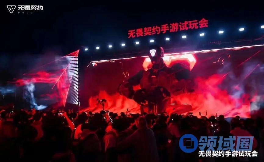除了线上社交平台的设计,《无畏契约》也非常注重线下社交。比如此次先手试玩会,官方便借此在上海繁华的徐汇区商业地段、西岸大剧院旁,举办了一场盛会。现场有巨型K/O(《无畏契约》英雄)装置矗立。白天是人气主播、游戏圈Up主和职业选手的竞技1V1舞台;晚上便搭配灯光秀和音乐,成为户外蹦迪现场。