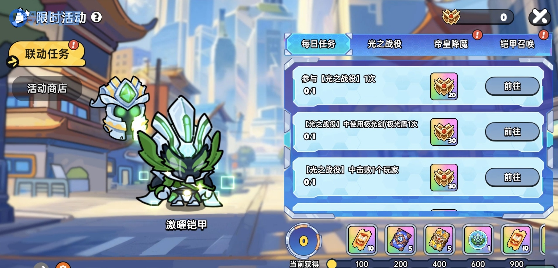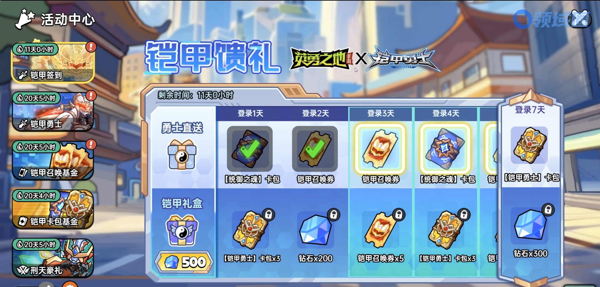 联动期间,玩家登录游戏即可领取丰富的登录奖励,包括卡包、召唤券等稀有道具,助力玩家更好地体验联动版本。此外,参与铠甲联动限时活动,完成后可免费获得激曜铠甲时装以及更多的道具资源奖励。