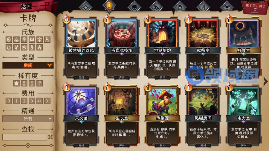 房间卡可以理解为“场地魔法”,可以装备在房间上,使房间获得一个特殊的“场地buff”,房间卡往往是某个流派的核心卡。