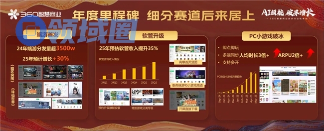 稳固根基,拓展安全业务;积极探索,解锁全新增量。通过在存量市场中的精耕细作以及在PC小游戏等创新场景中的增量空间探索,360智慧商业将更全面助攻游戏行业增长,立足于360集团20年的深厚积淀,携手合作伙伴共拓新机。