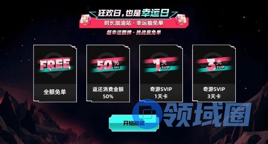 购买618超值套餐,还有机会翻牌抽免单!购买任意档位加速卡,将获得对应抽奖次数。全额免单、半价免单、奇游SVIP时长等福利等你拿!