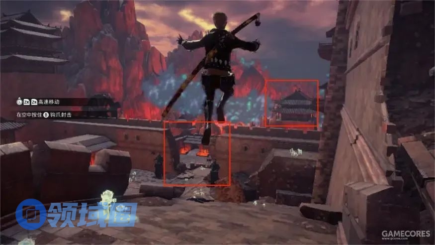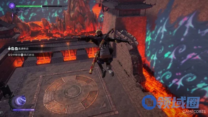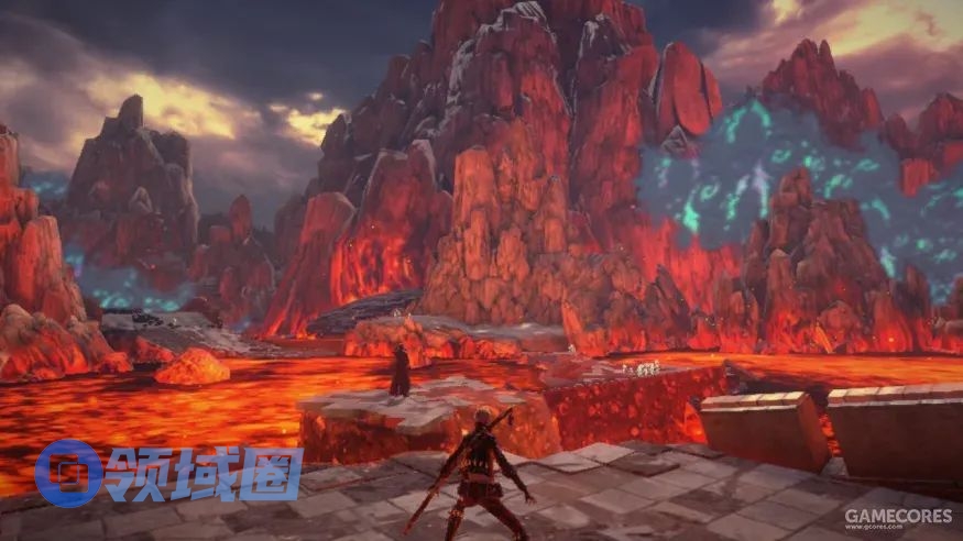 在结束这一个大区域的探索后,玩家进入下一个山洞区域。用岩浆区分可行走区域,同时有作为NPC的Luka引导你前行。