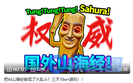 与此同时,也有越来越多游戏厂商开始选择相关元素进行游戏开发和投放。此前广大大发布的数据显示,海外市场上使用“Tung”等“ai山海经”元素进行广告投放的广告主数量已经突破了300。可见,“AI山海经”正在成为游戏市场新的流量密码。
