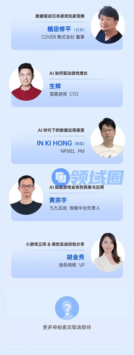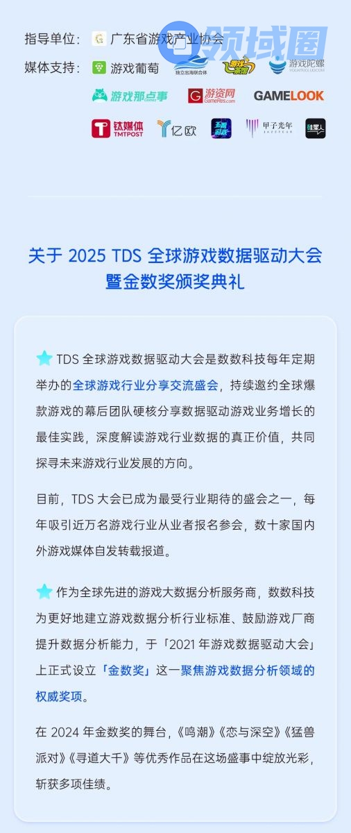 当前位置:首页>资讯>7月9日广州见!2025全球游戏数据驱动大会嘉宾阵容揭晓! 7月9日广州见!2025全球游戏数据驱动大会嘉宾阵容揭晓! 资讯 6月18日 编辑 领域圈 取消关注 关注 私信 声明:领域圈所有文章,如无特殊说明或标注,均来自于互联网或为领域圈用户原创发布。任何个人或组织,在未征得原作者同意时,禁止复制、盗用、采集、发布领域圈内容到任何网站、书籍等各类媒体平台。如若领域圈内容侵犯了原著者的合法权益,可联系我们进行处理。 给TA赏 共{{data.count}}人 人已赏