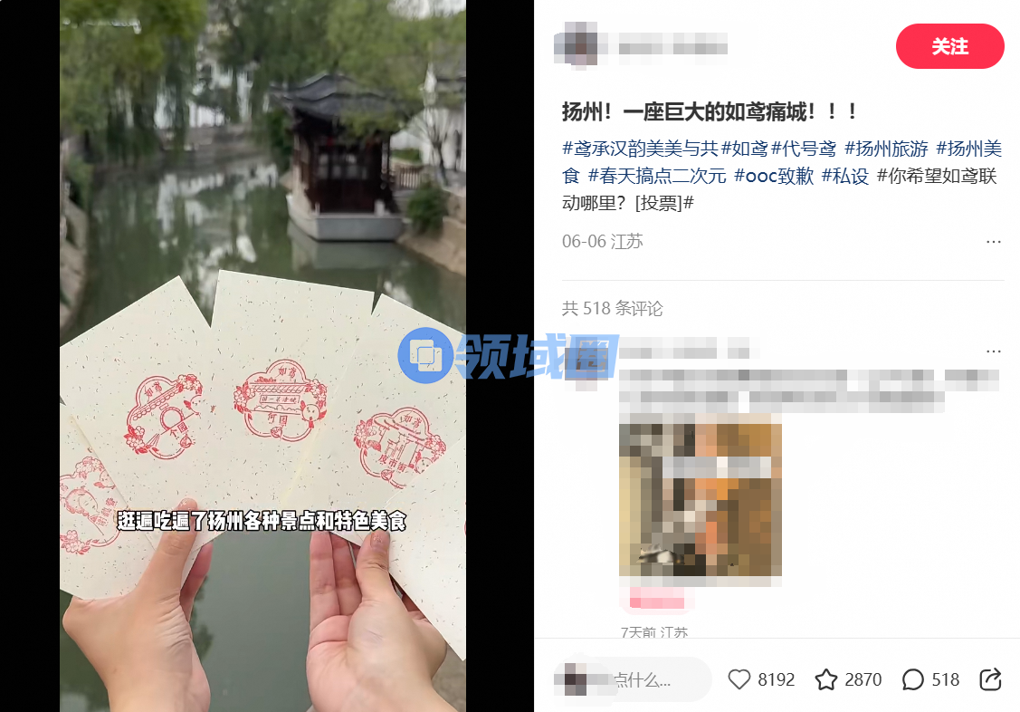 除了海外大屏快闪活动外,《如鸢》还和扬州开启了“汉韵游扬州”城市联动活动。
