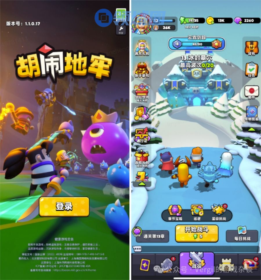《胡闹地牢》的外围是较为传统的大数值放置RPG结构,也是中度游戏中标准的混合变现模式,